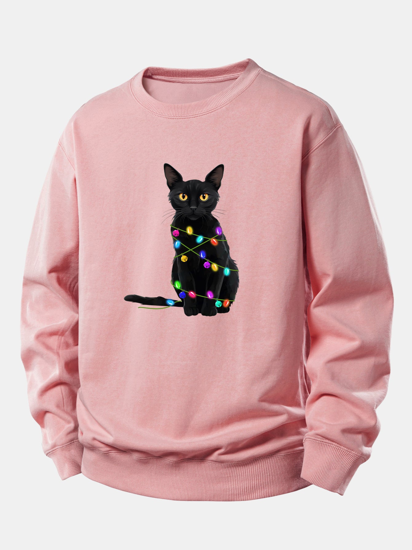 Color Lights Black Cat Print Relax Fit Sweatshirt