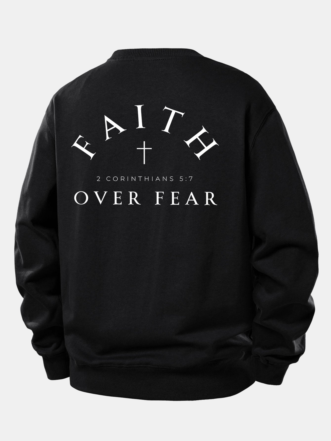 Featuring the uplifting ''Faith Over Fear'' slogan, this cozy sweatshirt is a daily reminder to stay strong and hopeful. Crafted from soft, breathable fabric with a relaxed fit, it offers ultimate comfort and effortless style — perfect for casual days, lounging, or faith-based gatherings.