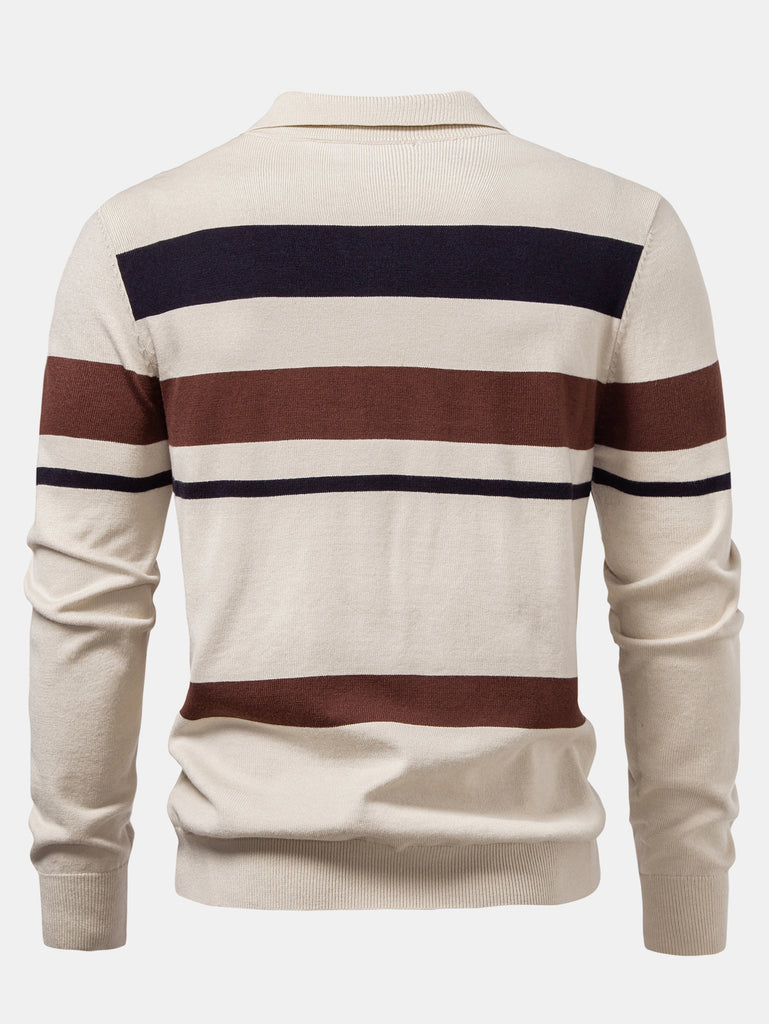 Koszulka polo z długim rękawem w paski i dopasowane zwężane spodnie